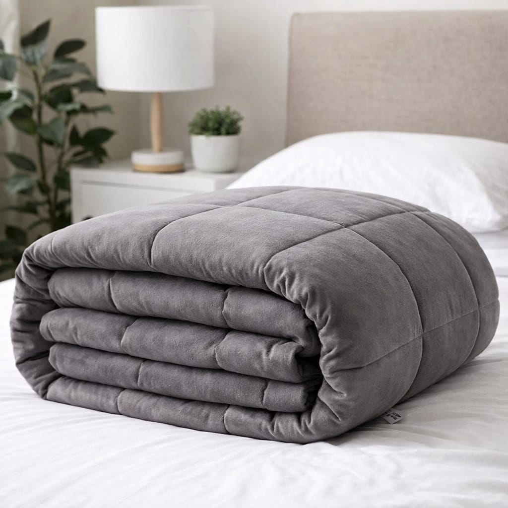 Der gleichmäßige Druck einer Gewichtsdecke aktiviert das Nervensystem ähnlich wie eine Umarmung und fördert Melatonin- und Serotoninausschüttung für tieferen, erholsameren Schlaf.