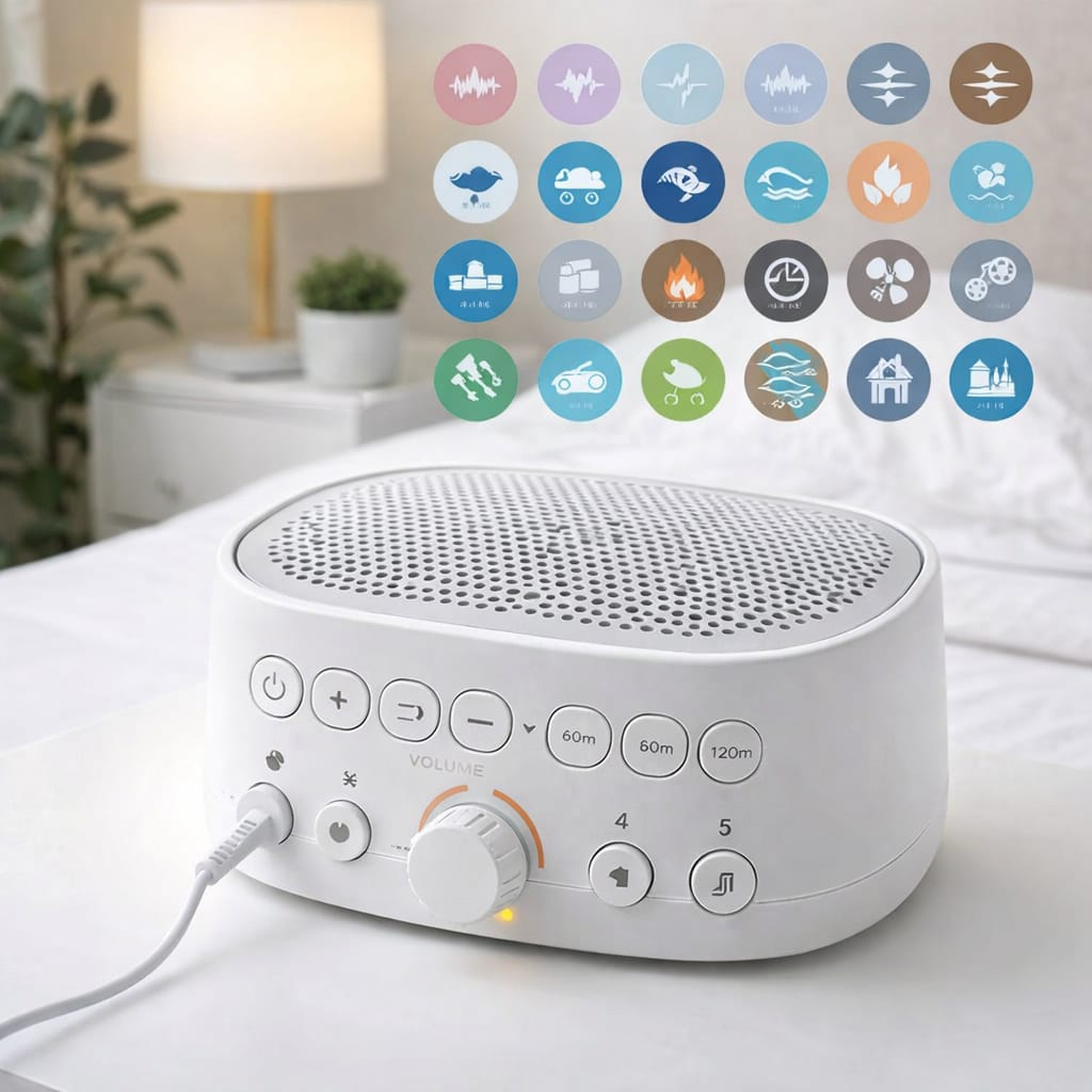 Weißes Rauschen, Regengeräusche, Meeresrauschen – maskiert störende Umgebungsgeräusche, verbessert die Schlaftiefe und hilft besonders in lauten Städten oder bei Schichtarbeit.