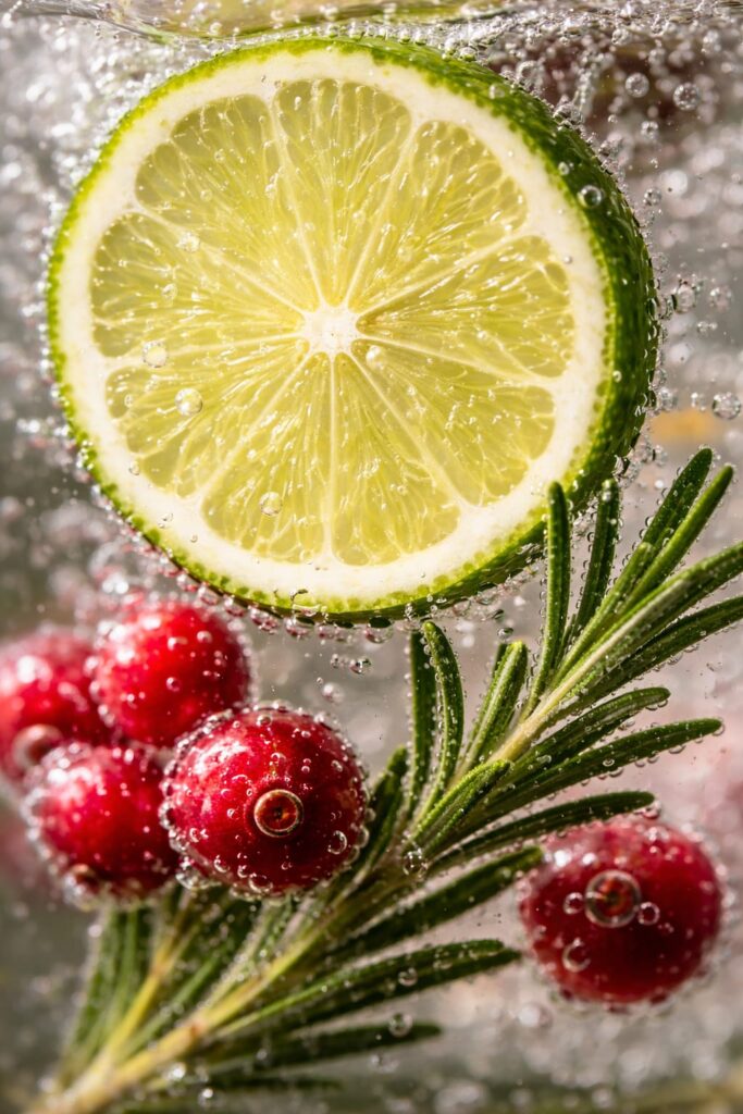 Sommer: An heißen Tagen kannst du deinen Cocktail mit gefrorenen Beeren aufwerten. Eine Handvoll tiefgekühlte Preiselbeeren oder Himbeeren direkt in den Becher – sie fungieren sowohl als Geschmacksträger, als auch als Eiswürfel.